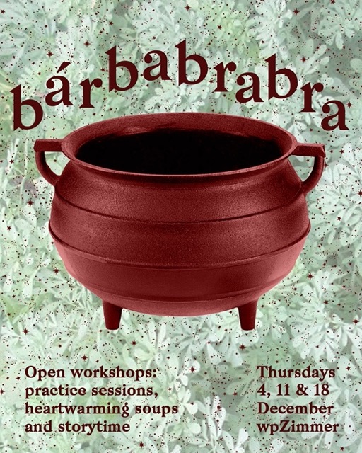 Het collectief bárbabrabra zal vier weken lang in residentie zijn bij wp zimmer en drie momenten van open schrijven en tekenen organiseren rond een pot hartverwarmende soep en verhalenvertellers.